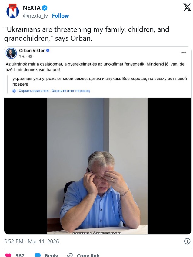Në një video të publikuar të mërkurën në mbrëmje, Orban shihet duke folur në telefon me vajzat e tij, duke iu referuar kërcënimeve që ai pretendon se vijnë nga Ukraina. “Jam i sigurt që do ta shihni në lajme se ukrainasit më kërcënuan jo vetëm mua, por edhe juve”, dëgjohet të thotë ai, ndërsa shton se situata duhet marrë seriozisht, por pa pasur frikë. Sipas raportimit të gazetës britanike The Guardian, deklarata e Orbanit ka të ngjarë t’i referohet komenteve të Hryhori Omelchenko, një ish-politikan ukrainas dhe ish-anëtar i shërbimit të sigurisë SBU në vitet ’90. Në një intervistë televizive, Omelchenko deklaroi se grupe qytetare mund ta shënjestronin kryeministrin hungarez nëse ai nuk ndryshon qëndrimin e tij ndaj Ukrainës.